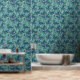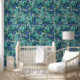 Blauwe Turquoise Monstera Bladeren & Vlinders Behang