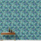 Een 3D-ontwerp van monsterbladeren in verschillende tinten blauw, met een vlinderbehangpatroon om producten, decor en kaarten te personaliseren voor unieke gelegenheden.