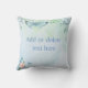 Een enkele blauwe vlinder op een bleke deegblauwe en groene achtergrond met een florale rand met één roze bloem, al dan niet met tekst naar keuze.