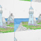 Hand getrokken denkbeeldige blauwe vuurtoren behang