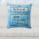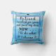 Het vers op deze kussen luidt: RETIRED werkte jarenlang en betaalde mijn geld NU zal ik doen wat ik kies. De achtergrond van de waterverf is een mooie combinatie van blauwe plekken, waaronder lucht, baby en Carolina. De verschillende schaduwen van blauw stromen over de kussen in abstracte golven. Het versum bevindt zich in een blauw lijst, samen met twee zoete madeliefjes. Een hartrol is boven het omgevormde vers en een eenvoudige lijn en puntverdeler is hieronder. Het kunstwerk is het zelfde op zowel de voorzijde als de rug van de kussen. Dit zou een geweldig Happy Retirement cadeau zijn.