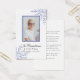 Bedankt uw gasten voor het bijwonen van de Celebration of Life Service van uw vertrokken met de Elegant Blue Winter Snowflakes Funeral Memorial Prayer / Poem Kaart. Personaliseer het met een foto, je eigen boodschap, gedicht of gebed op de achterkant. Deze stijlvolle aangepaste winterse death tribute kaart is voorzien van ingewikkelde blauwe sneeuwvlokken die de hoeken versieren met een witte achtergrond.