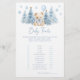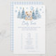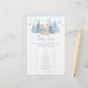 Voeg een vleugje elegantie toe aan uw winterse, feestelijke babyjongensdouche met onze verfijnde "Baby Traits" -game. Met een charmante teddybeer die een schattige blauwe boog draagt, een blauwe ballon vasthoudt, omringd door winterpijnbomen en sneeuwvlokken en een babyblauw ginghampatroon aan de achterkant, is deze heerlijke activiteit perfect voor het vermaken van uw gasten en het creëren van blijvende herinneringen. Ideaal voor het toevoegen van plezier en opwinding aan uw speciale feest!