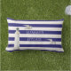Blauwe witte nautische bijtvuurtorkieuwen buitenkussen