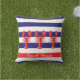 Versier uw zomerhuis of strandhuis met een klassiek nautisch kussen. Navy blauw, rood en wit gekleurde horizontale strepen. Met drie rode kreeften als decor. Een enkele rode streep en de tekst: Beach House