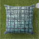 Blauwe X's en O's Pattern Black Check OutdoorPillow. Een artsy gelaagd ontwerp met onduidelijk beeld, grijzen, en zwarte tinten. Een prachtig binnenhuis- of buitendeuropening voor iedereen met een eclectische en stedelijke stijl.