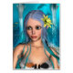 Schattigee zeemeermin met blauw en groen haar en gele waterleliebloem op een blauwe fantasie oceaan achtergrond