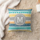 Grafisch en modern blauwgroen turkooisblauw, houtskool grijs, marinesblauw, oranje, geel en wit tribaal patroon aangepast monogram decoratief werpklooster. Volledig aanpasbaar, voeg uw eigen initiaal voor een echt uniek punt van het huisdecor toe.