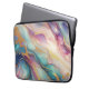 Bescherm uw laptop tegen krassen en stof met deze stijlvolle laptophoes met een blauwgroen, aqua, blauw, paarse, roze en goudkleurig marmeren golfpatroon. Deze laptophoes is gemaakt van hoogwaardig neopreen dat zacht, duurzaam en waterbestendig is. Hij heeft een ritssluiting en een zwarte rand, waardoor hij goed en veilig past, en is beschikbaar voor een 10-, 13- of 15-inch laptop. Deze laptophoes is een perfect cadeau voor uzelf of iemand speciaal, of een geweldig accessoire voor elke gelegenheid.