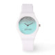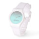 Aqua Blue Blauwgroen en Silver Sparkle Glitter Monogram Name Watch. Dit maakt het perfecte afstuderen, verjaardagsfeest, bruiloft, vrijgezellenfeest, jubileum, baby shower of vrijgezellenfeest cadeau voor iemand die houdt van glam luxe en chique stijlen.