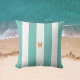 Blauwgroen Cabana Stripe & gepersonaliseerd Oranje Buitenkussen