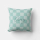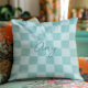 Blauwgroen Checkers Monoline Naam Kussen