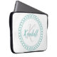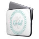 Blauwgroen decoratief monogram laptop sleeve