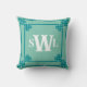 Blauwgroen dubbel Grieks sleutel monogram ontwerp Kussen