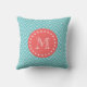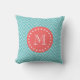 Blauwgroen en koraal Chevron met aangepast monogra Kussen