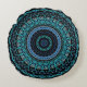 Blauwgroen en zwart Mandala ontworpen rond kussen. Door celeste@khoncepts.com #tealandblack