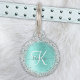 Blauwgroen geborsteld metaal Silver Glitter Monogr Huisdierpenning