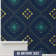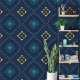 Transformeer uw leefruimte met ons unieke peel-and-stick behang. Geïnspireerd door de ingewikkelde patronen in de kunst van het Midden-Oosten, heeft dit behang een betoverend geometrisch motief. De diepe marineblauwe achtergrond vormt het toneel voor een symfonie van lichtere blauwe diamantvormen, elk met een achtpuntige ster in het blauwgroen. Goudgele accenten voegen een vleugje weelde toe, waardoor een harmonieuze balans ontstaat. Het roostereffect, gevormd door ketens van gouden stippen en kleinere blauwgroen kringen, roept het vakmanschap op van historische tijdperken zoals Byzantijnse en Ottomaanse rijken. Het is een viering van tijdloze elegantie. Diepe blues roepen sereniteit en diepgang op, terwijl de poppen van goud en blauwgroen levendigheid inboezemen zonder de zintuigen te overweldigen. Het resultaat? Een geavanceerd palet dat past bij elk interieur.