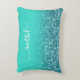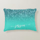 Faux dunne blauwgroen glitter ombre-bekleding tegen een heldere turkooiskleur. U kunt de effen kleur als achtergrond aanpassen. Voeg een monogram achter de voornaam toe aan creëer uw eigen gepersonaliseerde monogrammed ontwerp. De gepersonaliseerde tekst kenmerkt een moderne handgeschreven stijldoopvont met krullende swashes. Kies uw eigen douanekleur voor de doopvont. Verwijder de spoeling en voeg een hoofdletter toe als je wilt. Verplaats de naam naar een andere positie op haar rechthoekaccentkussen.