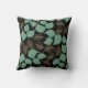 Blauwgroen groen goud breed bladeren patroon op zw kussen