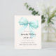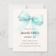 Een zacht beige, crèmekleurige achtergrond, versierd met een grote blauwgroen, lichtgroene boog. Personaliseer en voeg een naam en partijgegevens toe. 1 vel = 1 uitnodiging bedrukt rand tot rand.