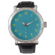 U zult show van goede smaak dragen deze blauwgroen-face en goud-genummerde horloge.