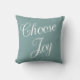 Prachtige blauwgroen en witte Christelijke Bijbelbuikkussen met tekst aan beide zijden. De tekst vooraan zegt: "Kies Joy." De achterkant van de kussen heeft het Christelijke Bijbelversum Nehemiah 8:10 "De vreugde van de Heer is mijn kracht."