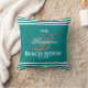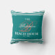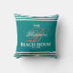 Stijlvol en elegant levend blauwgroen strandhuis, huishuis of een vakantiehuismonogram monogram scriptdecor werpen kussen. Koraalkleurmonogram initiaal met witte vetgedrukte typografie. Gebruik de functie "deze sjabloon personaliseren" om uw familienaam, initiaal en de vastgestelde datum in te voegen.
