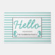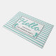 Kustzeepaardjes met het woord "Hallo" in dik schrift. Deze mat kan gepersonaliseerd worden met de naam van je familie!