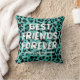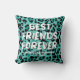 Moderne BFF vriendschap gooit kussens met een trendy blauwgroen leopard patroonachtergrond, de woorden "beste vrienden voor altijd", de naam van jou en je besties en het jaar dat je vrienden werd.