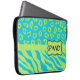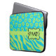 U zult van deze leuke en trendy laptoptas houden. Kleurrijke zebrastrepen en cheetah-skins voor grafisch ontwerp zijn een van de heetste kunst- en ontwerptrends, en zijn uiterst populair van mode tot decor thuis. Dit verfijnde kalkgroen en turquoise blauwgroen blauw zebra en cheetah collectie is één van verscheidene beschikbare kleurencombinaties. Een kalkgroen embleem creëer een verpersoonlijkingsgebied. Dit is volledig klantgericht om te personaliseren om jouw naam, monogram initialen, bedrijfsnaam of andere woorden te omvatten om uw bericht over te brengen. Ga wild met deze wilde design.