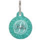 Blauwgroen mousserend glitterpatroon, monogrammen huisdierpenning