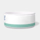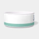 Turquoise blauwgroen blauw-groen gepersonaliseerd wit keramisch voedsel of waterkom voor je hond- of kattenvoer of water met een eenvoudige, minimalistische, moderne streep en een handgeschreven, stijllettertype zullen er geweldig uitzien in elke ruimte nadat je kleuren hebt gekozen die passen bij de eigen kom en die passen bij het seizoen, de locatie of de persoonlijkheid van de huisdieren!