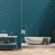 Blauwgroen & Navy geometrisch rasterpatroon Behang