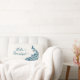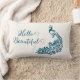 Een kussen met een afbeelding blauwgroen pauw met fancy veren. Typografische tekst zegt "Hallo Prachtig".Een coole kunstdecostijl. Moderne en klastige