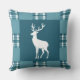 Blauwgroen Plaid met White Deer Silhouette Kussen