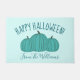 Haal deze blauwgroen pompoen Happy Halloween trick or treat doormat om families die kinderen met allergieën hebben te laten weten dat je niet-voedsel en allergie-vriendelijke behandelingen aanbiedt. Pas je aan met je familienaam!