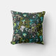 Een paddenstoelenkussen met een blauwgroen retro paddenstoelenpatroon in een aantal verschillende paddenstoelen voor een vol fungi bospatroon.