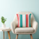 Beide zijden van deze kussen hebben een vet patroon van blauwgroen, rode, en witte strepen in variërende grootte. Moderne, kleurrijke, en zal zeker geweldige kleur aan om het even welke ruimte toevoegen.
