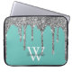 Blauwgroen Silver Glitter Drift Sparkle Monogram N Laptop Sleeve
