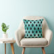 Blauwgroen, waterige waterverf met een zwarte en witte argyle-ontwerp op een kussen.