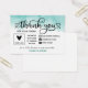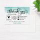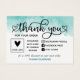 Hartelijk dank voor het schattige ontwerp van uw aankooppakket met een script dat is ingericht met harten tegen een blauwgroen waterverf. Pas uw zakelijke logo en uw socialemediaaccount aan. U kunt ook een kortingscode opschrijven voor de volgende aankoop van uw klanten.