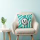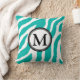 Elegant en modern turquoise blauwgroen aqua pauock blauw, zwart en wit, schattig dierlijk zebrapatroon aangepast monogram decoratief werpkussen. Volledig aanpasbaar, voeg uw eigen initiaal voor een echt uniek punt van het huisdecor toe.