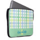 Blauwgroene Limoen pastel gingham patroon monogram Laptop Sleeve