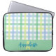 Als een picknickdeken in blauw, groen en limoen, brengt dit gingham-sleeve een vleugje nostalgie met een eigentijdse twist. Pasteltinten voldoen aan strakke lijnen, met een groen kleurblok en aangepaste naam en initiaal. Stop je laptop erin en draag hem met stijl naar de klas, de kantoor of je favoriete café. Klik op de knop Bewerken om het patroon te verplaatsen of te schalen en personaliseer met uw gegevens. Bedankt voor het bekijken van een Eria Daisy Art ontwerp!