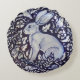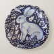 Mijn originele, auteursrechtelijk beschermde, ingewikkelde konijn en schepsels van keramisch bord zijn een schattig kussen. Schilderingen en reflecties op het bord zijn zichtbaar. Perfect blauw en wit keukenaccent.