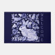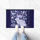 Mijn originele, auteursrechtelijk beschermde blauwe en witte tegel van konijnen is een klassieke versiering voor een welkome mat. "Welkom" staat verticaal naast de kunstwerken van een schattig konijnenkonijn en vogels in een gestileerde tuin gevuld met wijnstokken en bloemen geïnspireerd door antiek schilderingen van Delft, Dedham en Aziatische stekelhuizenmoties. Whimsical, origineel, uniek kunstwerk en design van Tuzi Williams.