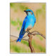Waterverf schilderij van een blauwvogel.