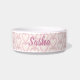 Show je liefde voor je kostbare vier bedekte familielid met deze kom die een patroon van bleek roze gestippelde harten bevat. Voeg de naam van uw huisdier eenvoudig toe aan het vak dat u hebt meegeleverd.