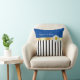Voeg een pop pizzaz toe aan je zomerdecor. Dit ontwerp werkt goed met de meeste decors. De onderste drie derde van het kussen is zwart en wit strepen met het resterende deel in een effen blauw. Als je deze look bij elkaar trekt, is er een goudkleurig lint met een enkele daisy. De tekst "happy as a daisy" kan worden gepersonaliseerd.